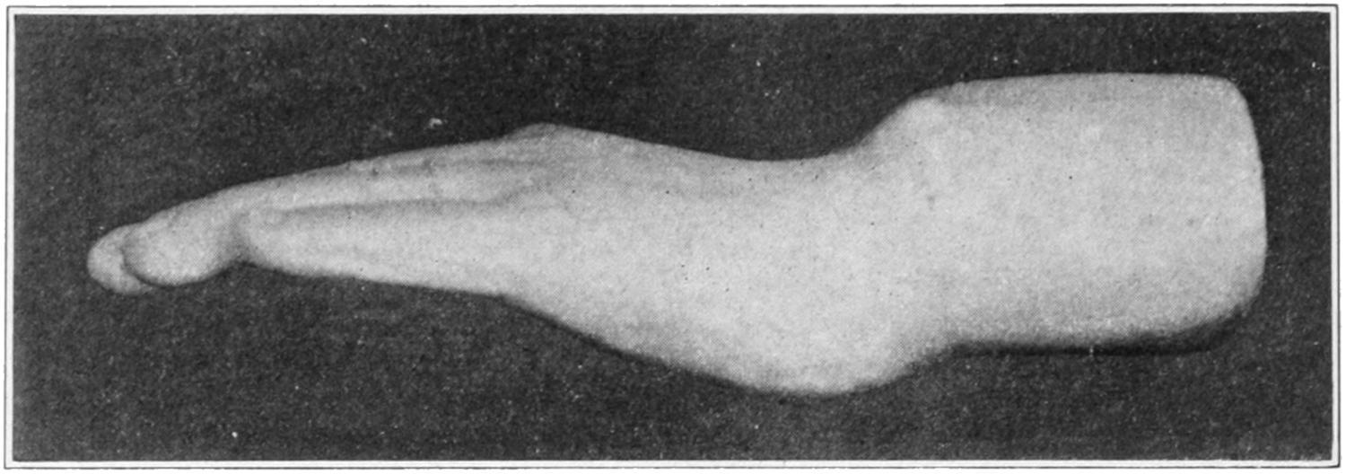 The same is true of fractures of the phalanges, which are often made compound by the injury. Here the danger is not so much to the bone as to the tendon sheaths or thecæ, along which infection may easily spread. Widespread and prolonged suppuration might disable a hand thus injured unless properly and promptly dressed. Ordinarily adjoining fingers can be utilized for splints, and if the outstretched hand be fastened upon a palmar splint and the injured finger kept in position by its neighbors a good result can generally be obtained. Occasionally distinct splints for one or more fingers are required, and occasionally also the suggestion made above with regard to traction may need to be enforced.