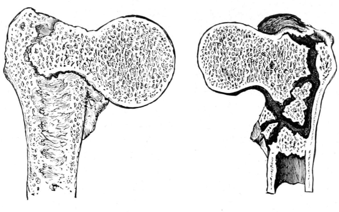 as though it were a fracture. I am sure that many cases which have gone into court have been due to incomplete fractures with impaction, where there has been later absorption of bone, by which the femoral neck has been much shortened, so that recognizable deformity as well as more or less disability have resulted. Other changes comprised among those already described in the chapter on Joints, under the section on Arthritis Deformans, may also occur. Callus which has been at one time abundant may also undergo too great absorption.