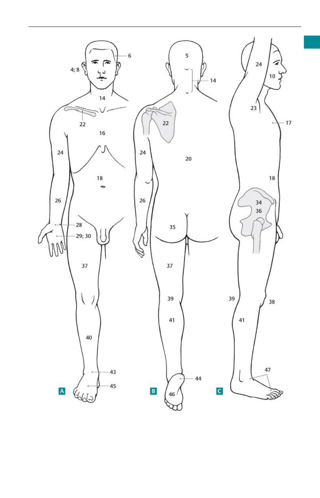 13 Regiomastoidea (regiónmastoidea).Regiónsituada sobre la apófisis mastoides. B C