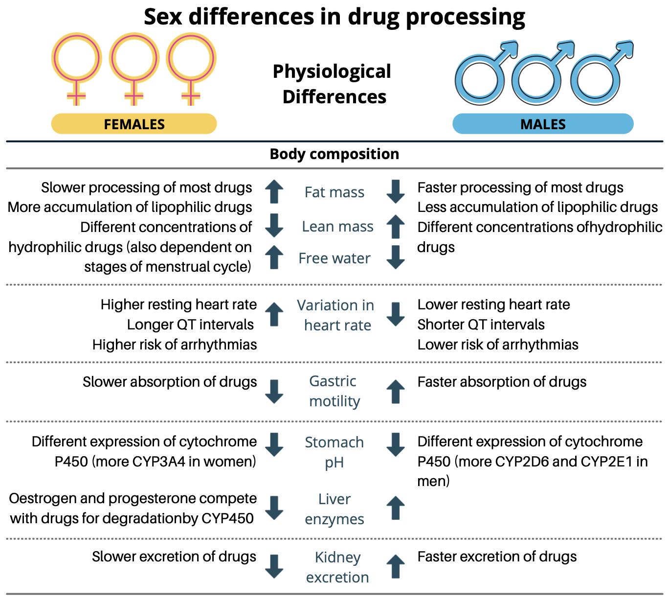 Figure 3. Physiological differences in males and females that can affect drug processing. Adapted with permission from [49].