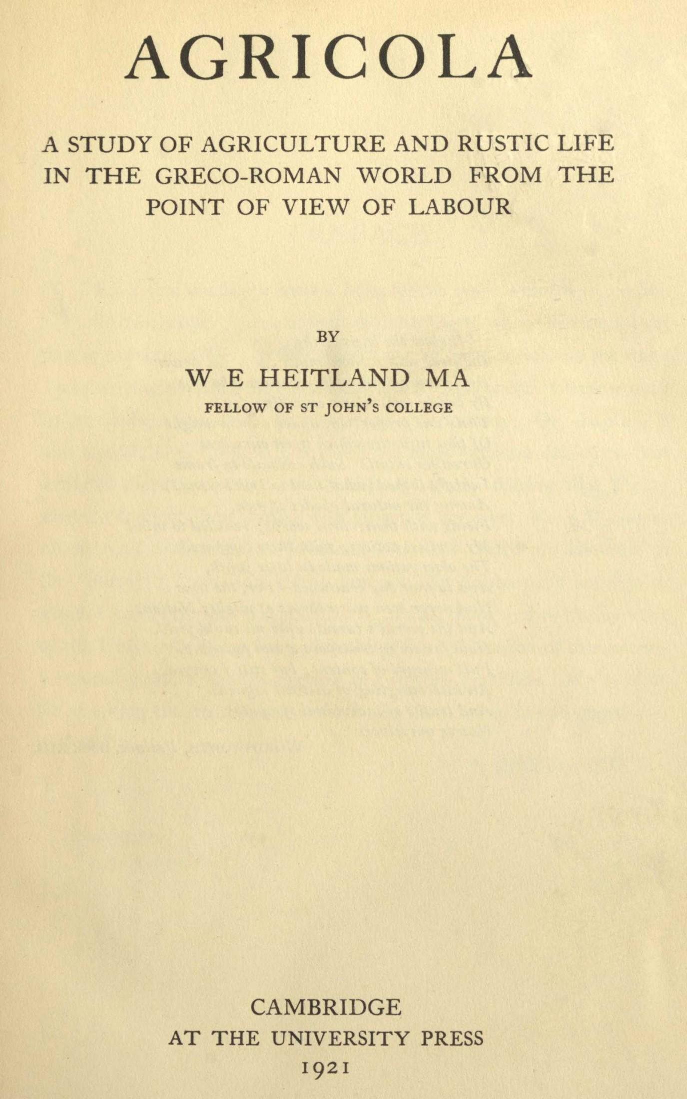 It is evident that in the handling of evidence there is room for some variety of method. And it seems reasonable to hold that the choice of method should be mainly guided by two leading considerations, the nature of the evidence available and the aim of the inquiry pursued. In the present case the inquiry deals with a part, a somewhat neglected part, of Greco-Roman history: and the subject is one that can by no means be strictly confined to ascertaining the bare facts of farm life and labour. That the conditions of agriculture were not only important in connexion with