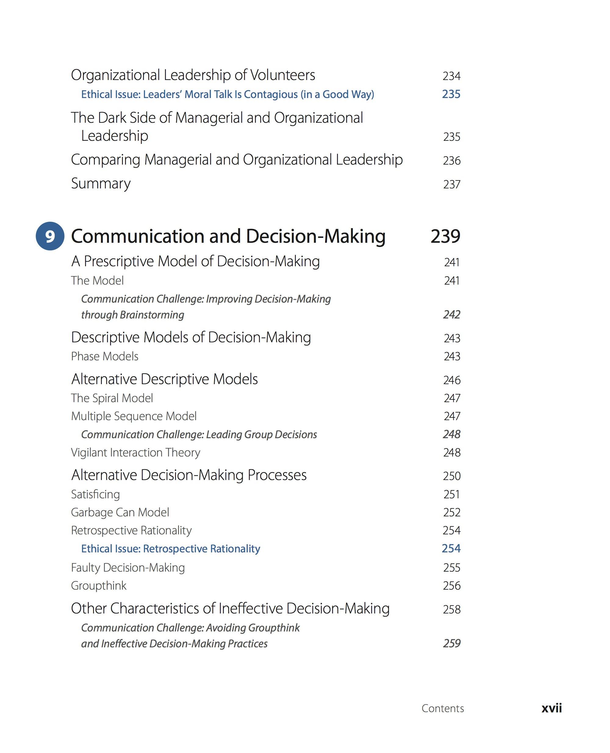 an effort to reduce gender stereotypes. Each chapter includes ethical issue boxes to help students and instructors explore potential ethical issues related to the chapter's topics. Each chapter includes communication challenges that allow instructors and students to consider some of the practical issues related to applying the communication concepts in the chapter. Each chapter also includes a section applying the concepts to nonprofit and volunteer settings.