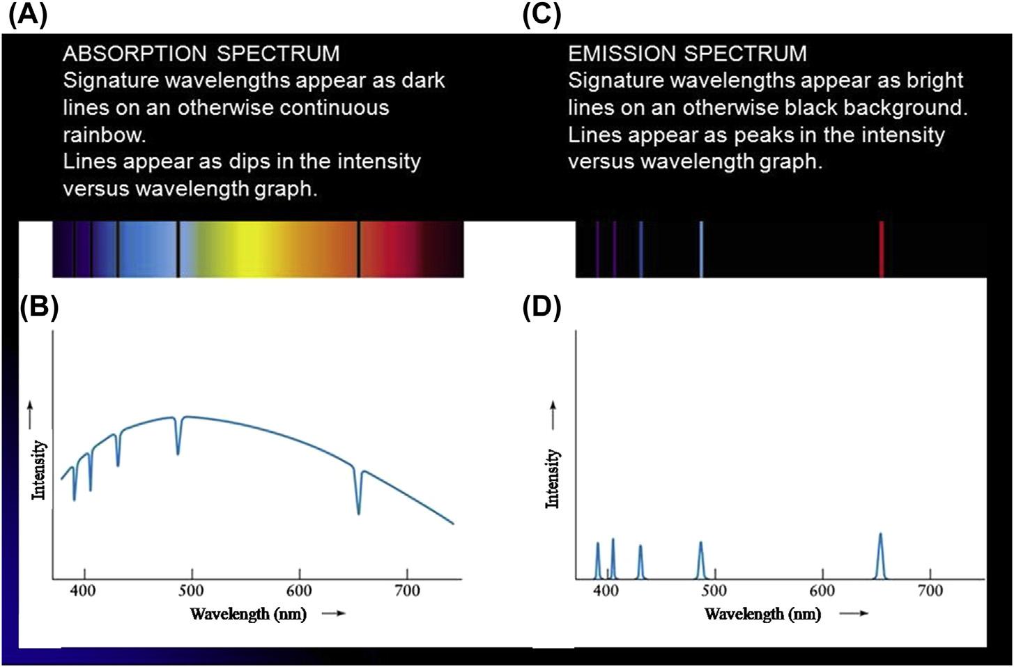 Extendingthisabit,itshouldbecomeclearthatsinceeverychemicalelementhasitsownunique setofallowedenergylevels,eachelementalsohasitsowndistinctivepatternofspectralabsorption (andemission)lines!(Seediagrambelow(See Fig.1.3)forhydrogen).Itisthisspectral“fingerprint” thatastronomersusetoidentifythepresenceofthevariouschemicalelementsinastronomicalobjects. Spectrallinesarewhatallowus,froma“spectrum,”toderivesomuchinformationabouttheobject beingobserved!