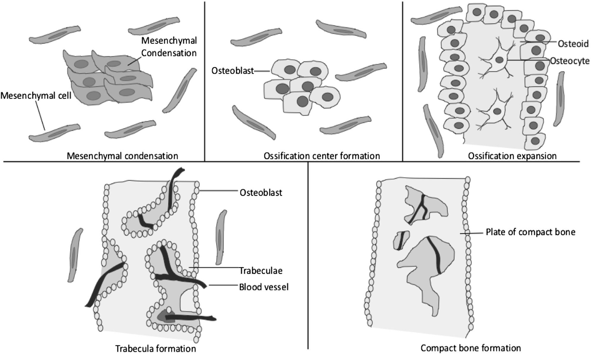Molecular and cellular regulation of intramembranous and endochondral bone formation during embryogenesis