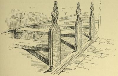 they be cut down at the will of either? In the thirteenth century, when the charge of looking after the churchyards was regarded as weighing chiefly on the clergy, it was considered that to repair the church—either chancel or nave—the trees growing in them might be cut. Otherwise, as they had been planted for the purpose of protecting the churches from damage by gales, they were to be left to grow and carry out the end for which they had been placed there. Archbishop Peckham had previously laid down the law that, although the duty of keeping the enclosure of the cemetery rested upon the parishioners, what grew upon holy ground being holy, the clergy had the right to regard the grass and trees and all that grew in the cemetery as rightly belonging to them. In cutting anything, however, the archbishop warned the clergy to remember that these things were intended to ornament and protect God’s house, and that nothing should be cut without reason. However the question of the ownership of the trees growing in churchyards may have been regarded by the parishioners, there are evidences to show that they did not hesitate to adorn their burial-places with trees and shrubs when needed. At St. Mary’s, Stutterton, for instance, in 1487, the churchwardens purchased seven score of plants from one John Folle, of Kyrton, and paid for “expenses of settyng of ye plants, 16d.”