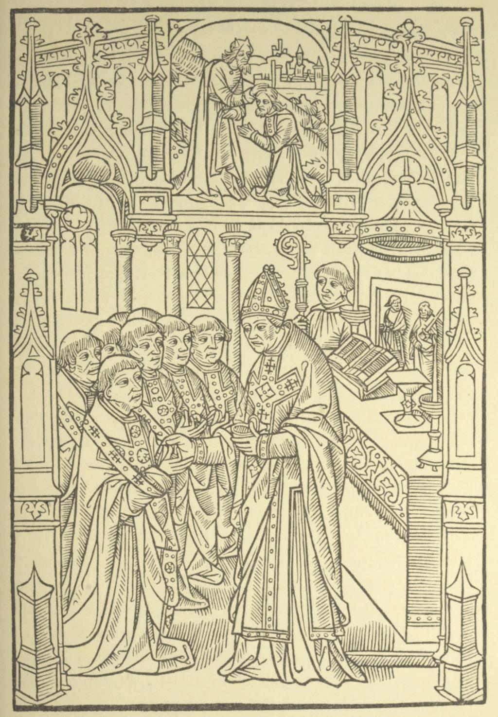 The age when the candidate for Orders could be promoted to the various steps leading to the priesthood was settled by law and custom. A boy of seven, if he showed signs of having a vocation to the sacred ministry, might be made a cleric by receiving the tonsure. In “rare instances” and under special circumstances he might then receive an ecclesiastical benefice, and so get the wherewith to live while he was studying to fulfil the duties attached to his office. In the course of the next seven years the youth could be given the minor Orders of “doorkeeper,” “lector,” “exorcist,” and “acolyte.” He would then be at least fourteen years of age, and thus at the time of life at which in those days students were supposed to begin their