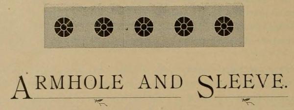 Sleeve and back are to be connected at 8 numbers from O, and at the back base, but this is for normal forms only, or for the normal position of the arm only. Persons whose occupation compels them to throw their arms forward should have some surplus cloth at that point even if the sleeve shows too much cloth when the arms hang down. Surplus length allowed there must not be accounted for in the sleeve length. Another good way, to provide such sleeves with extra length at the back seam, is to throw the front seam of the sleeve,