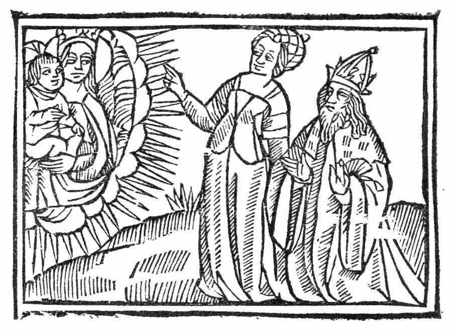 Cesar augustus fut empereur de romme & de tout le monde/ & pour ce que au temps de sa seigneurie fut paix par tout le monde que il seigneurioit paisiblement/ la folle gent mescreant tenoient que celle paix fust pour cause du bien de luy/ mais non estoit/ car c’estoit pour cause de Jesuchrist qui estoit né de la vierge Marie & ja estoit sur terre/ & tant comme il vesquit paix fut par tout le monde/ si vouloyent adorer cesar comme dieu/ mais adonc sibile Cumana lui dist que bien gardast que adorer ne se feist/ & qu’il n’estoit fors ung seul dieu qui tout avoit creé. Et lors le mena sur une haulte montaigne hors de la cité & dedens le soleil par la voulenté nostreseigneur apparut une vierge tenant ung enfant. Sibile luy monstra & luy dist que celuy estoit vray dieu qui devoit estre adoré/ & adonc Cesar le adora. Et pource que cesar augustus qui prince estoit de tout le monde apprint a congnoistre dieu a la creance d’une femme peult estre dit a propos l’auctorité que dit Hermes. Ne te soit point honte d’ouyr verité & bon enseignement qui que le die/ car verité anoblist celluy qui la prononce.