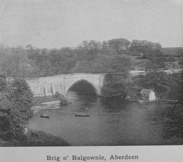 crops in low-lying fields. Some parts of Donside scenery, notably at Monymusk (called Paradise), and at Seaton House just below the Cathedral of Old Aberdeen, and before the river passes through the single Gothic arch of the ancient and historical bridge of Balgownie, are very fine—wooded and picturesque, and beloved of more than one famous artist.