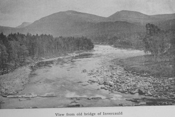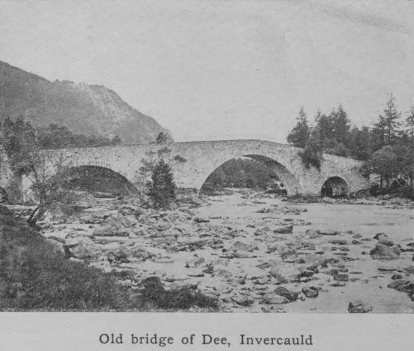 As the river descends to Braemar, the glen gradually widens out, and the open, gravelly, and sinuous character of the bed, which is a feature from this point onwards, is very marked. Pool and stream, stream and pool succeed one another in shingly bends, clean, sparkling and beautiful. At Braemar the bed is 1066 feet above sealevel. Below Invercauld the river is crossed by the picturesque old bridge built by General Wade, when he made his well-known roads through the Highlands after the rebellion of 1745. Here the Garrawalt, a rough and obstructed