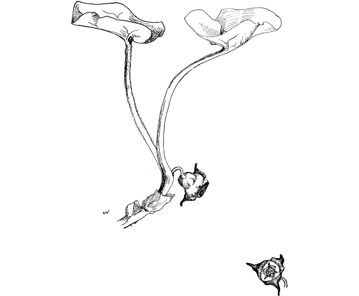 This is a noticeably lustreless flower. The twist in the foot-stem is an interesting feature.