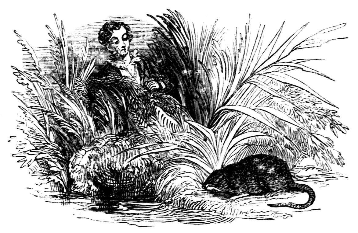 “No, my dear, it feeds on the soft roots of plants, which it finds in the water, or in the damp parts of the fields. It is not so fierce as the landrat, and its fur is more soft and close. When it hears a noise, it leaps into the water, and dives down in fear; but it cannot stay long there for want of air, so it rises again, and just puts its nose above the water, that it may be able to breathe and yet not be seen.”