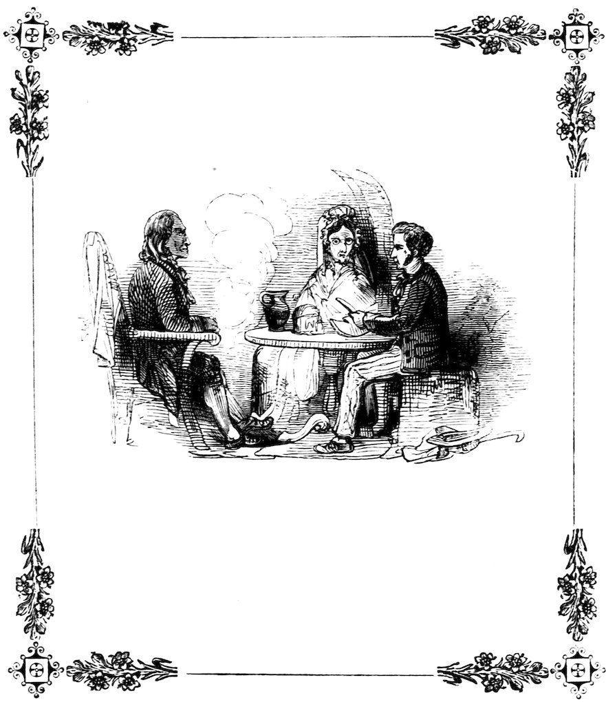 The man did as he was bid, took off his thick coat, which was quite white with snow, and went to the fire. As Kate set a chair for him, she saw that he had on a short blue jacket, such as her John wore when he came home from his first trip to sea. The sight of this, and the man’s honest face, quite won her heart; and she soon set before him some bread and cheese, and a mug of warm beer.