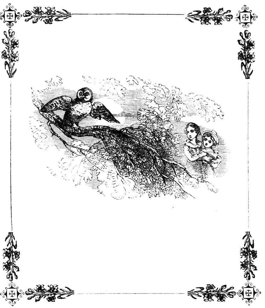 “Yes, once, a long while ago, when I was at play in the wood. I was going to hide in the trunk of an old tree, but when I put my head in, I heard such a noise, and looking up, I saw a large owl: he flapped his wings, and looked so fierce, that I ran away; and mamma told me a great deal about owls, when I got home.”