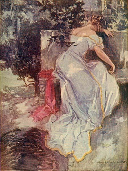 As he pondered, from the shadowy garden, under the orange-trees woven with the warm scents of summer, rose a soft strain. It was Teresa, singing to her harp, her voice burdened to-night with the grief of Mary Shelley—the song Gordon had long ago written to a plaintive Hindoo refrain.