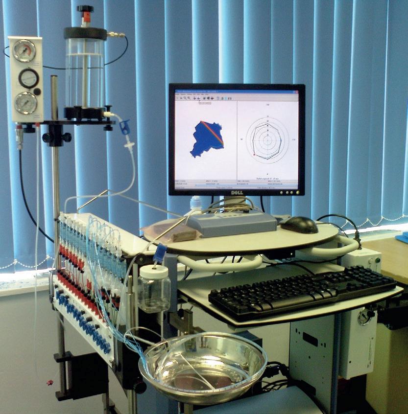 Water-perfused catheters use hydraulic capillary infusers to perfuse catheter channels, which are arranged either radially or obliquely staggered. Each catheter channel is then linked to a pressure transducer (Fig. 1.2). Infusion rates of perfusate (sterile water) vary between 0.25 and 0.5 mL/min per channel. Systems need to be free from air bubbles, which may lead to inaccurate recordings, and must avoid leakage of perfusate onto the perianal skin, which may lead to falsely high resting pressures due to reflex external sphincter action. Perfusion rates should remain constant, because faster rates are associated with higher resting pressures, while larger diameter catheters lead to greater recorded pressure. 7