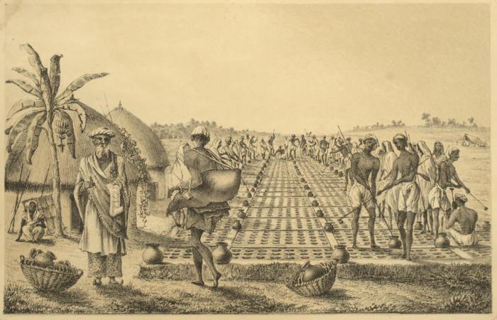 A rich buniyā, a corn chandler, whose house was near the gate of our grounds, departed this life; he was an Hindoo. On the 7th of November, the natives in the bazār were making a great noise with their tom-toms, drums, and other discordant musical instruments, rejoicing that his widow had determined to perform suttee, i.e. to burn on his funeral-pile.