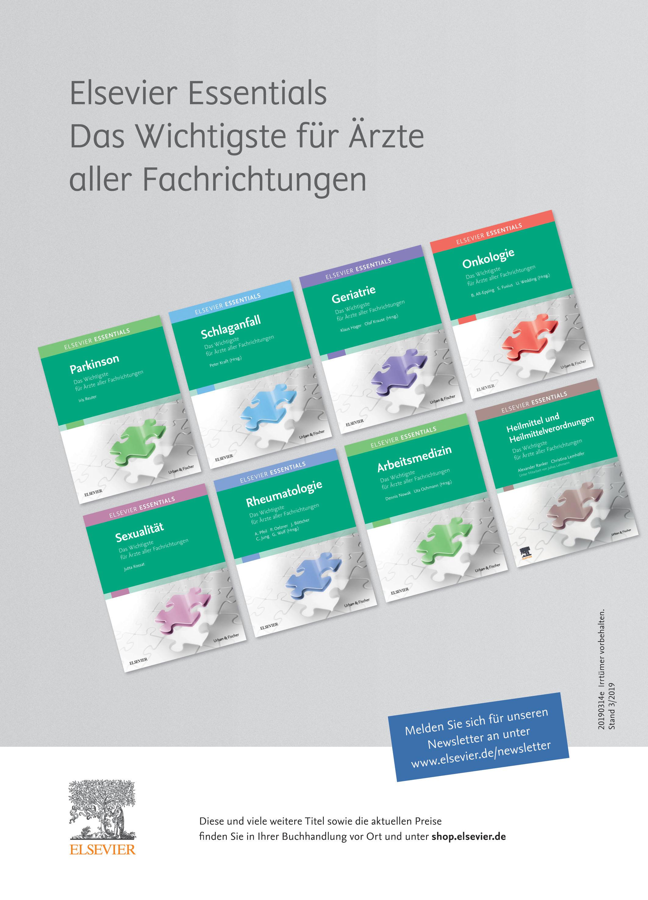 Wichtiger Hinweis für den Benutzer Ärzte / Praktiker und Forscher müssen sich bei der Bewertung und Anwendung aller hier beschriebenen Informationen, Methoden, Wirkstoffe oder Experimente stets auf ihre eigenen Erfahrungen und Kenntnisse verlassen. Bedingt durch den schnellen Wissenszuwachs insbesondere in den medizinischen Wissenschaften sollte eine unabhängige Überprüfung von Diagnosen und Arzneimitteldosierungen erfolgen. Im größtmöglichen Umfang des Gesetzes wird von Elsevier, den Autoren, Redakteuren oder Beitragenden keinerlei Haftung in Bezug auf jegliche Verletzung und / oder Schäden an Personen oder Eigentum, im Rahmen von Produkthaftung, Fahrlässigkeit oder anderweitig, übernommen. Dies gilt gleichermaßen für jegliche Anwendung oder Bedienung der in diesem Werk aufgeführten Methoden, Produkte, Anweisungen oder Konzepte.