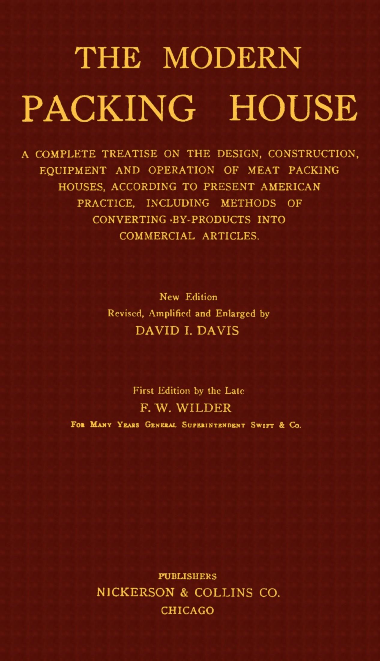 The present necessity of a work on packing house operation is more evident than when the first edition was published. The original work has been entirely revised where considered necessary, amplified in places and much new information added.