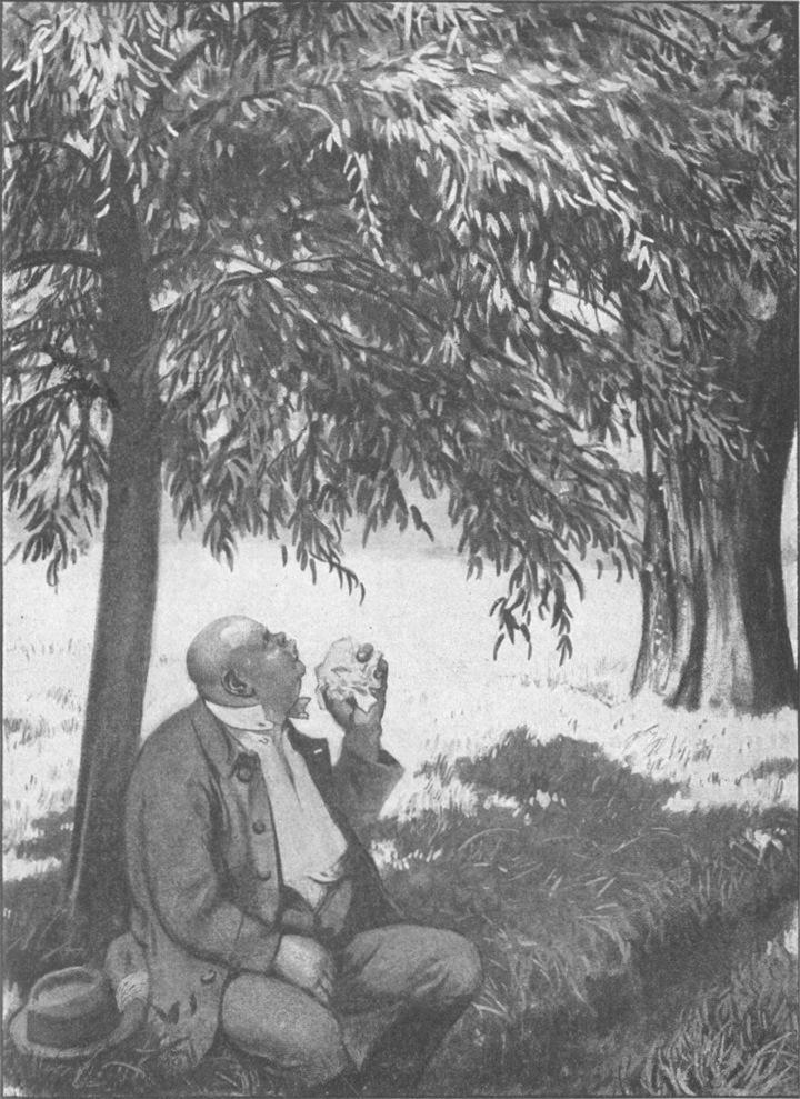 „Gewiß,“ sagte der Regenwurm. „Ich selber habe ihn vor Jahren in die Erde heruntergezogen. Er hing mit einem Blatt und einem Stengel zusammen; und Blatt und Stengel habe ich gefressen, aber mit dem Burschen habe ich nicht fertig werden können. Es war nicht so verwunderlich, denn es war eine Eichel. Jetzt ist sie ausgekeimt ... Es ist eine kleine Eiche.“
