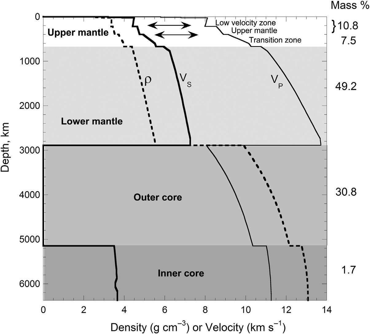 Manydifferenttypesofseismicwavesexist,butthemostimportantarethelongitudinal compressionwavesandthetransverseshearwaves,whoserespectivespeeds up and us canbemeasuredinlaboratoryexperiments.Importantly,liquidscannottransmitshear waves,becausefluidsflowunderanystress.Seismicvelocitiesarecontrolledlargelyby density,aslongknown(e.g., Shankland,1972),andsoareaffectedbymineralstructure andorientation.BecauseEarthisself-gravitatingandlarge,itsinteriorishighly 5