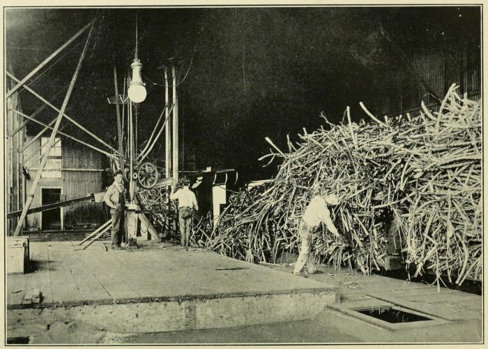 Formerly men stripped the leaves from the cane in the fields, but it was a difficult matter to accomplish such work, and the cost was heavy. An accident changed the method of doing this work. A field took fire and it was found that while all the leaves were consumed, little or no damage was done to the stalks provided they were cut promptly and sent to the mill to be crushed. The practice of burning has since become general, although the advisability of continuing it is now being given very careful study.