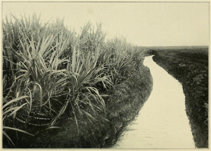 gently toward the sea, thus insuring good drainage and easy application of water for irrigation. Most of the cane is grown on land less than five hundred feet above sea-level, although in a few rare instances it is cultivated at an elevation as great as three thousand feet. Parts of the leeward side of the islands, where it is extremely dry and hot, and where the cane thrives best, depend entirely on irrigation, the water being brought to the plantations by ditches or pumped from wells. On the windward side of the island of Hawaii, where the rainfall is abundant, irrigation is unnecessary except during very dry periods.