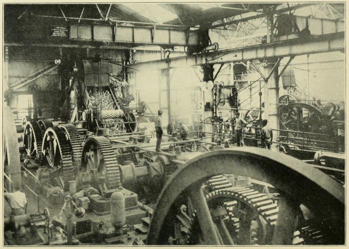 From the crusher the mat of cane passes to the mills proper. These mills consist of from nine to eighteen rolls, about thirty-four