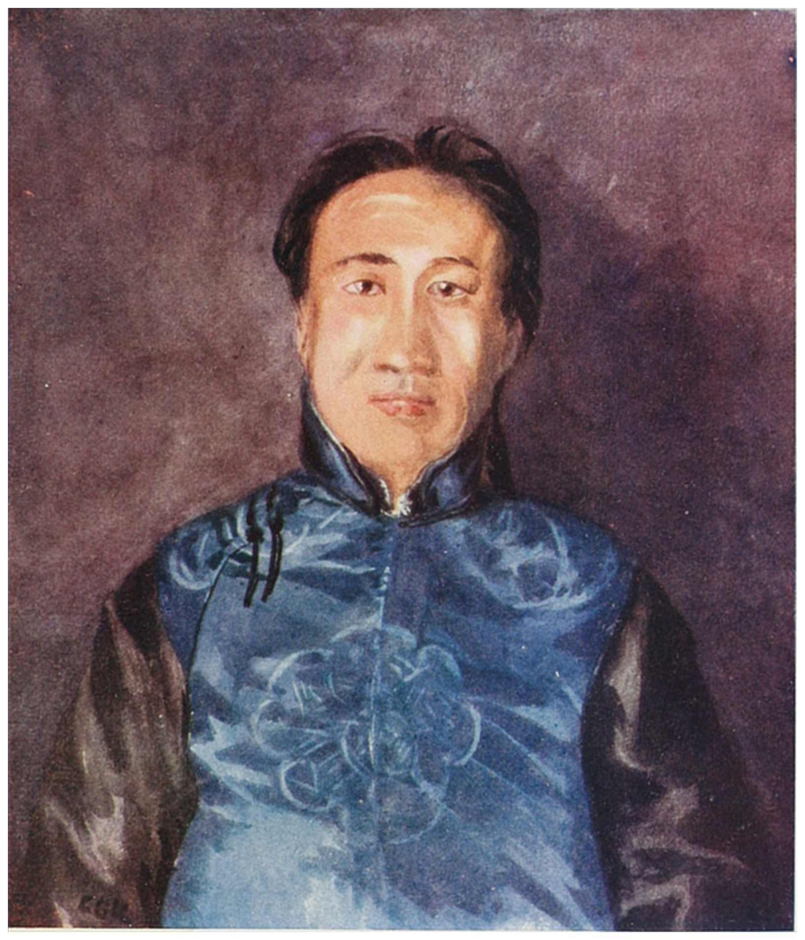 The next point was to secure a red-boat (= lifeboat), for which we applied to the British Consul, and he again had to apply to the Chinese General, who is always willing to provide one gratis to foreign travellers. The Consul—like many of his class in China—at once suggested every possible difficulty, and seemed to think that at his request we should meekly turn round and go home again. He told us that he had just refused to give the bishop a passport for some ladies travelling into Szechwan, and we were thankful that we had got ours—though not without difficulty and vexation— elsewhere. As we were backed up by advice received at the British Embassy at Peking with regard to our journey, the Consul could not refuse to apply for the red-boat escort, though later in the day he had the satisfaction of telling us that none was available. Happily, however, one came in before we started, so that we had No. 48 assigned to us on Friday evening. It was very wet all day, but I found an interesting subject to paint in a family ancestral tablet. On the right-hand side is a drum for worship, and on the altar in front of the tablet is a bronze vase in which burning sticks of incense are placed. On certain days the members of the family prostrate themselves before it, and offerings of cakes and fruit are presented by them.