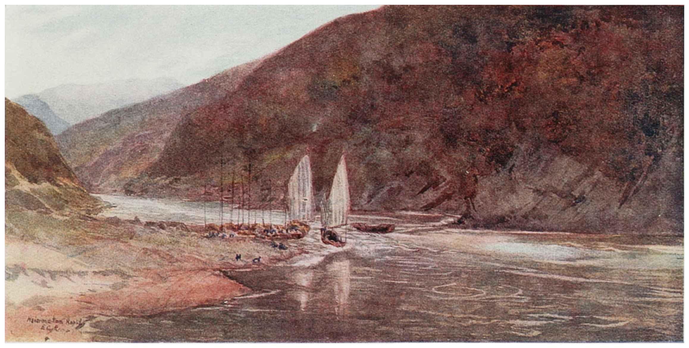 Wet weather set in next day and lasted more or less for a week, so that the crags overhanging the banks near Ichang looked grand and forbidding as we steamed up to it.