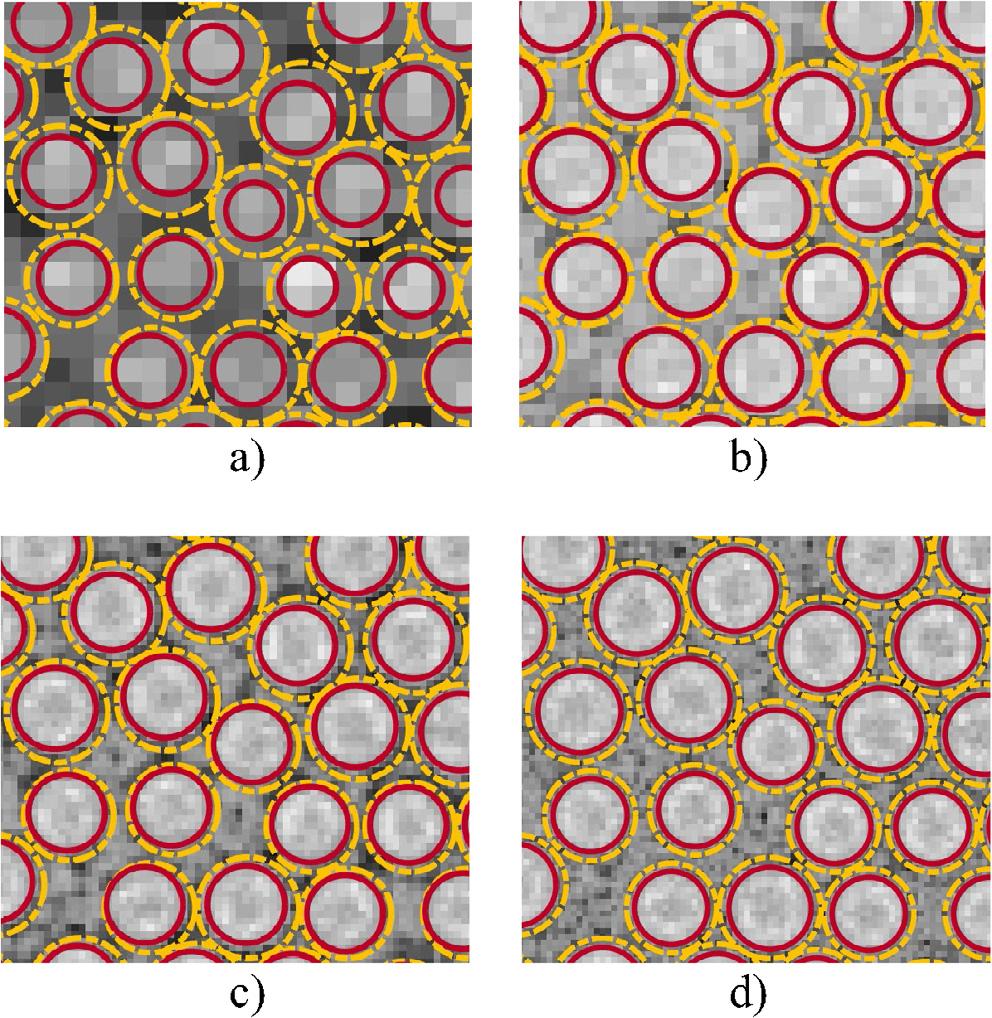 • Forallimageresolutionsconsidered,thesegmentationalgorithm exhibitsalargeandsystematicerrorinestimatingthetruecrosssectionalareaofindividual fibers.Thiserrorisrelatedtosimplificationsusedtogeneratesynthetictemplates,whichdonotaccount forbeam-hardeningartifactsoccurringontheperimeterofindividual fibersimagedusingX-rayCT.