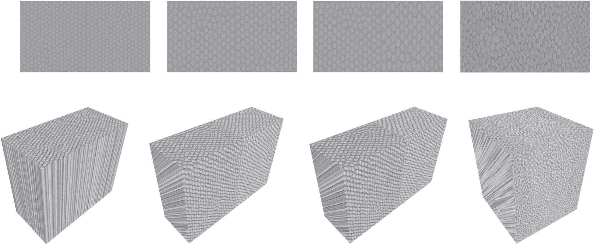 RealX-ray μCTimageswereacquiredon1mm×1mmsection extractedfromIM7/8552carbon/epoxylaminate,whichcontained pliesorientedat+45°, 60°,and+60°withindividual fibershavinga nominaldiameterof5.2µm [41].ImagingwasperformedusingaZeiss Xradia520VersaCTmicroscopeovera360°rotationusing4000projections,60kVvoltage,5Wpower,14sexposuretimeperprojection, anda40×objectivelens.Theresultingvoxelsizewasapproximately 410nm,andthetotalscantimewasapproximately16h.Reconstructionofattenuationdatawasperformedusing filteredback-projection producing949cross-sectional,gray-scaleimages.Duetothe