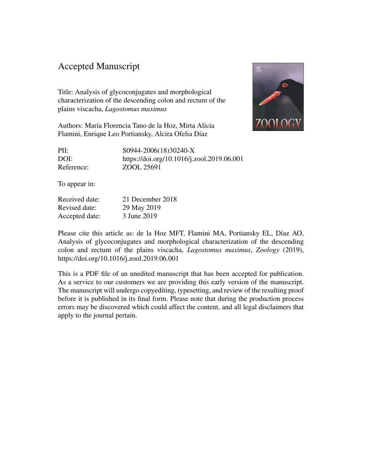 Analysis of glycoconjugates and morphological characterization of the descending colon and rectum of the plains viscacha, Lagostomus maximus Mara Florencia Tano De La Hoz & Mirta