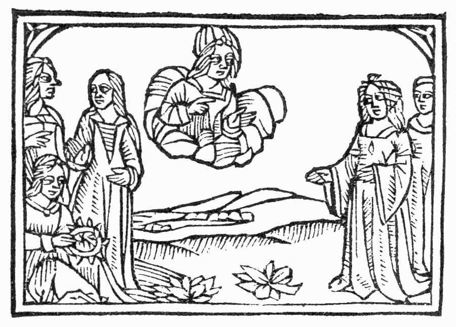 Ysis dient aussi estre deesse des plantes et de cultiveure qui leur a donné vigueur et croissance de multiplier. pour ce dit au bon chevalier et donne comparaison que ainsy doit il fructifier en toutes vertus/ et tout mal vice eschiver. Et dit hermes a ce propos. O homme se tu sçavoies l’inconvenient de vice comme tu t’en garderoies. Et se le louyer congnoissoyes de vaillance comme tu l’aimerois.