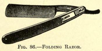 For the removal of the strips the Thiersch razor is to be used. It is concave on its upper side and plane below, the blade being bent at an angle to the handle (Fig. 85). Folding razors of the same type can be procured; their advantage lies in having a protecting case when not in use.