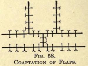 In this the twisting of the flaps is but little, while in the following, in which the defect is of similar shape, the twisting is more apparent; so much so, that a fold at the root of the flap may be