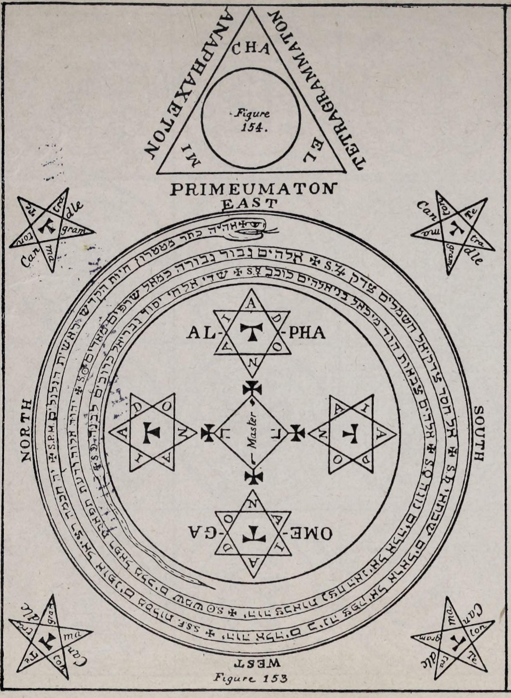 31. The coiled serpent is only shown in one private codex, the Hebrew names being in most cases simply written round in a somewhat spiral arrangement within the double circle. It is to be remembered that Hebrew is always written from right to left, instead of from left to right like ordinary European