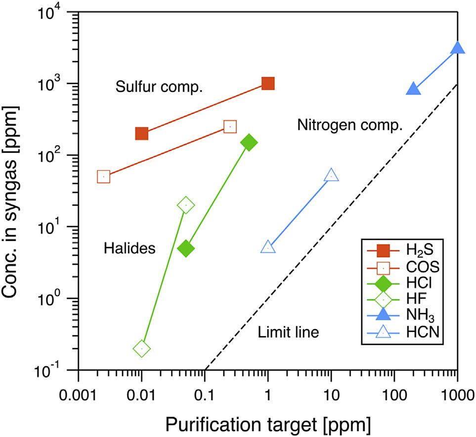 Concentrationsoftypicalimpuritiesinsyngasandtheirpurificationtargets.