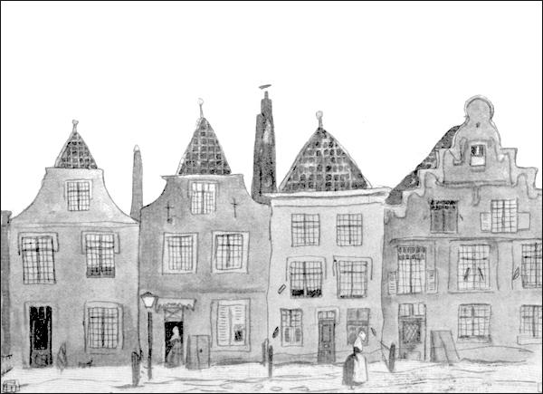 C’était, dans cette petite ville aux maisons comme des joujoux peints, un logis d’heureuses gens, clair, vernissé et chaud, un vrai œuf de Pâques en ouate et en sucre. Comme tout le monde dans le quartier se levait tard, les fumées ménagères étaient lentes à monter des toits. Discrètement ensuite, les portes s’ouvraient pour la petite promenade des chiens; ils étaient bien élevés et couraient tout de suite au ruisseau, sans aboyer. On était là comme en paradis, avec des rêves doux sous la couette. Même, les jours de marché, les maraîchers faisaient un détour pour ne pas déranger le sommeil des habitants: ils entraient par l’ancienne porte des remparts, longeaient la distillerie de Pietersen en Zoon, passaient par la grand’rue, puis débouchaient sous le jaquemart du beffroi, devant les halles.