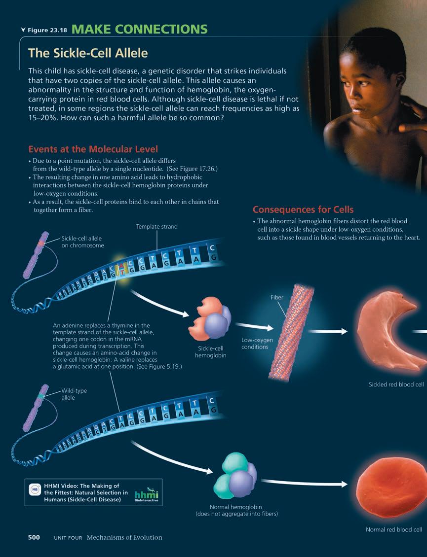 Figure 23.18 the sickle-Cell allele, shown at right and on pp. 500-501