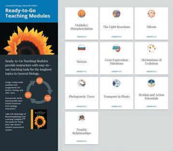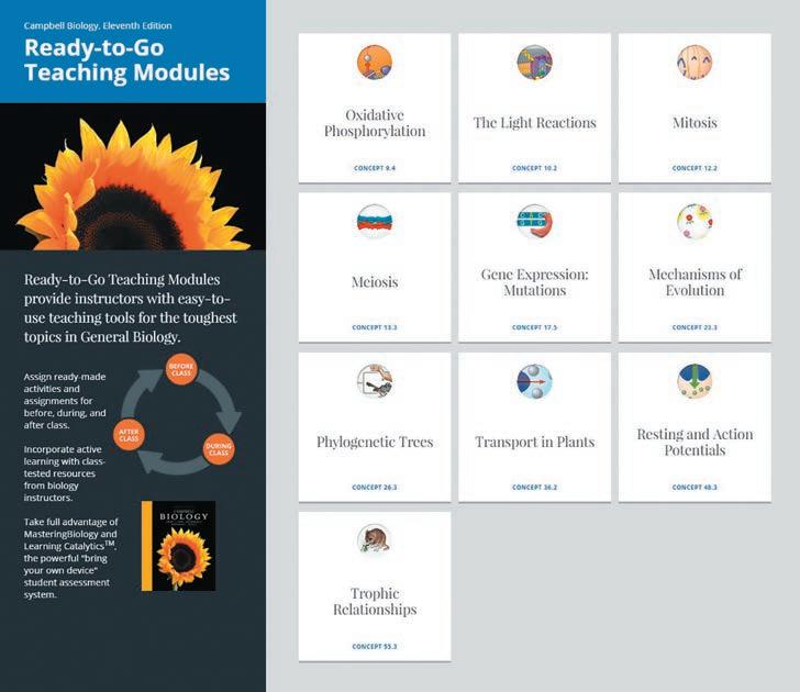 the Ready-to-Go Teaching Modules incorporate the best that the text, MasteringBiology, and learning Catalytics have to offer, along with new ideas for in-class activities. the modules can be accessed through the instructor resources area of MasteringBiology.