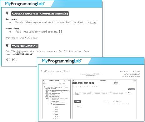 MyProgrammingLab automatically detects errors in the logic and syntax of their code submission and offers targeted hints that enables students to figure out what went wrong and why.