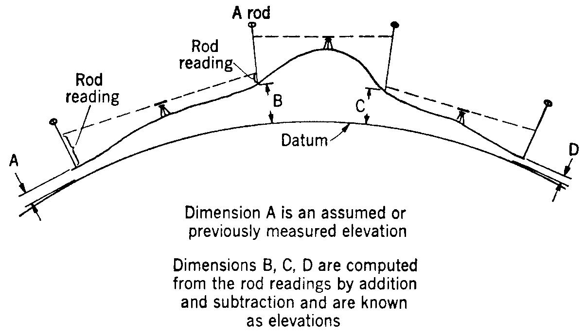 In a vertical control survey,the elevations ofrelatively permanent reference points are determined by precise leveling methods.Marked or monumented points ofknown elevation are called elevation benchmarks (BMs).