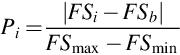 where FSmax and FSmin are the maximum and minimum fitness values. FSb is set to FSmax for minimization and FSmin for maximization (Chu et al., 2006; Chu & Tsai, 2007).