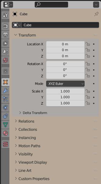 Object Properties Button Transform tab