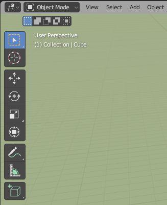 Note: The buttons shown in the diagram can be seen in the panel at the upper left hand side of the default Blender Screen arrangement.