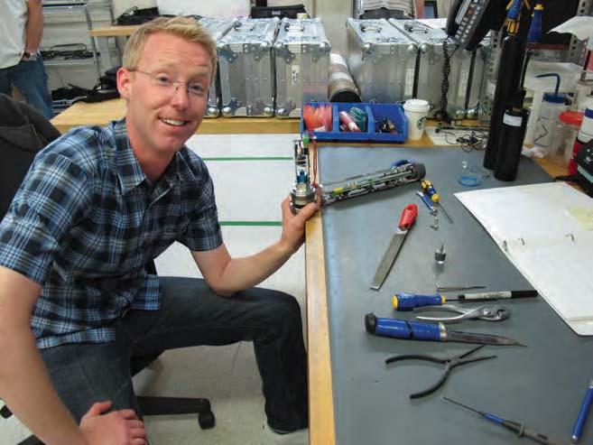 A marine technician assembles a sensor. Most oceanographic data are collected by remote sensors like this one.