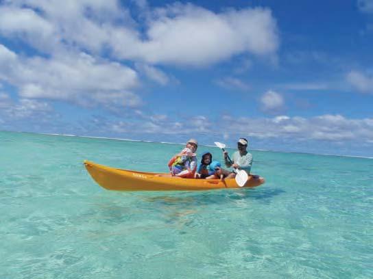Kayaking in the crystal-clear waters of the tropics can provide relaxation for the entire family.