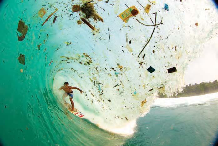 Trash in the surf in Java, southern Indonesia. Residents dump their waste in rivers that lead to the sea.