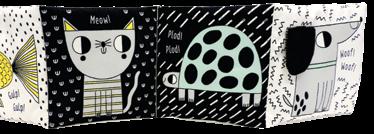Illustrated with bold, high contrast black-and-white patterns, and featuring a crinkle effect on every page, these small-size cloth books support visual development and engage concentration.